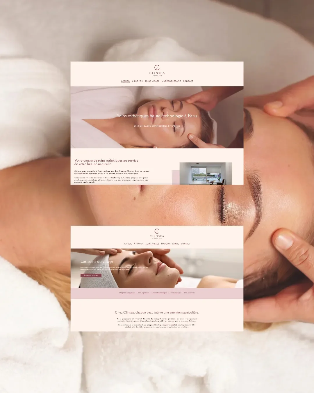 La palette chromatique épurée et sophistiquée, la typographie délicate, et l'ensemble des éléments graphiques ont été pensés pour incarner cette promesse : révéler la beauté naturelle sans artifice, dans un environnement apaisant où la technicité se fait discrète au profit du soin. Le site web et les supports de communication traduisent cette élégance sobre et cette attention méticuleuse qui caractérisent chaque protocole Clinsea.